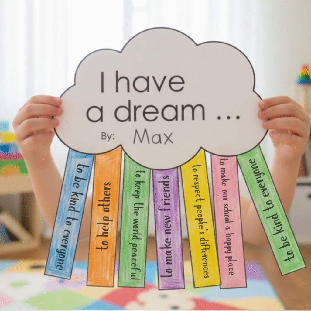 Using easy Martin Luther King Jr. crafts for preschool & elementary students allows children to explore important values in a way that’s fun, creative, and age-appropriate. These activities help young learners understand that even small acts of kindness can make a big difference—just like Dr. King showed the world.